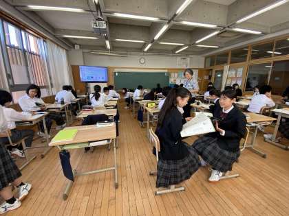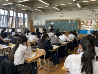 午前中の授業参観では、大勢の保護者の方々、地域の皆様に来校いただきました。生徒たちは、普段通りの様子で、それぞれ頑張っていました。授業の様子を、一部掲載します。初めに1年生の様子です。(上から国語・体育・英語)