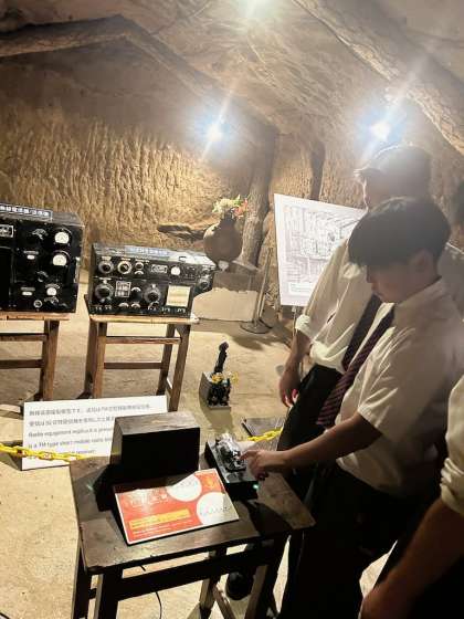 平和公園からバスに乗り、海軍司令部壕に到着しました。旧日本海軍によって掘られた壕が、当時のまま残されているそうです。