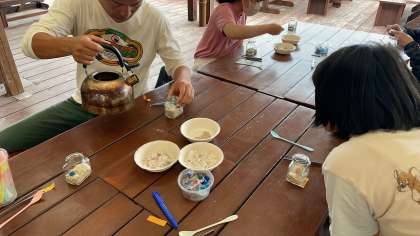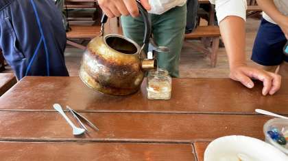 ジェルワックスを入れて固めます。みんなそれぞれの海をイメージして工夫しています。