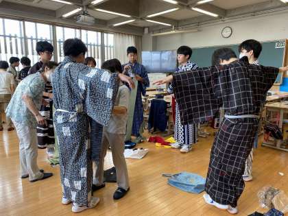 浴衣をはおり、自分の身体に合わせて、かっこよく整えていきます。