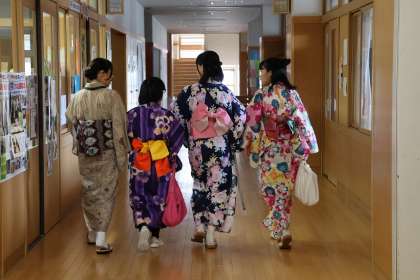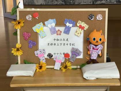 ゆかたを学校で着る人もいました。今までの練習の甲斐あって、一人で着られる人が多くなっていました。