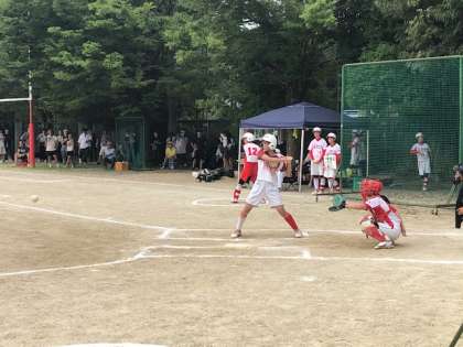 1回に2点を入れ、幸先のよいスタート。しかし、相手にリードを許し、その後は追いかける展開となります。最後の攻撃となる回では、3点差にまで差を詰めます。80分を超える試合の中で、お互いに声をかけ合いながら最後まで戦い抜きましたが、あと少しのところで敗れてしまいました。
