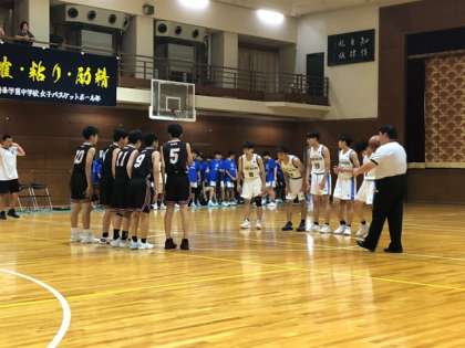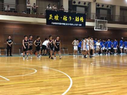 7月20日(土)、京都市中学校夏季選手権大会の男子バスケットボール部の試合が京都精華学園の体育館で行われました。相手は春季大会の優勝校である京都精華学園です。試合前にチームが一つになり、いよいよ試合開始です。