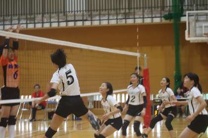 続く試合は、西賀茂中学校との対戦でした。序盤より攻防激しく、両チームの激しいプレーが続きます。1セット目は、下京中の勝利。続く2セット目は、相手チームの得点でスタートし、どちらも全力投球です。わずかな点差で試合が進行し、2セット目は相手チームの得点で終了。勝負は最終セットに持ち越されました。