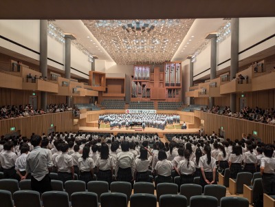 5百人以上の大合唱。全校生徒の心が一つになる瞬間に立ち会えたことが幸せに思える歌声でした。