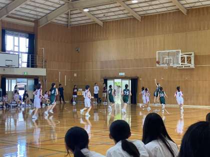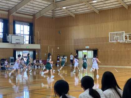 試合後半、緊張感をもちながらも、チーム一丸となって攻防が続きます。試合に出ない部員たちは、全力で応援に徹し、体育館内には元気な声が響き渡りました。最終結果は、62対19で下京中の勝利!2年生部員14名全員が出場し、得た勝利です。これからますます、チームとして成長していってください。