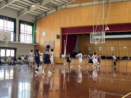 ゲーム後半も、力強いプレーが続きます。相手校の攻撃をかわし、うまくパスをつないで得点していきました。全員の息の合ったプレーで、応援も含め、チームの力を発揮し、99対35で勝利しました。