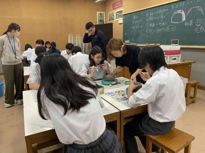 10月9日(水)、陶芸家の先生を講師とした「茶器づくり」(2時間目)を実施しました。前時より制作中の椀を手に取ると、適度に水分が抜け、形を整えやすい状態になっていました。(天候によって乾き具合が異なる椀の状態を、陶芸の先生が、何度か見に来てくださっていたのです。)