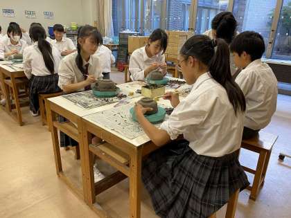 授業時間の終わりには、それぞれの椀を完成させ、大きな達成感でいっぱい。成型した椀は、窯で焼いて、色付けしていただきます。優しくわかりやすくご指導してくださった先生方、本当にありがとうございました。世界に一つだけの椀と対面する日が、待ち遠しいですね。「和の文化」に触れる時間を、これからも大切にしたいと思います。