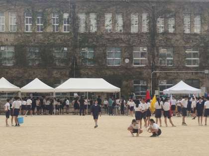 10月16日(水)午後、「体育の部」の準備の様子です。陸上部、生徒会本部、専門委員会の生徒たちが、役割ごとに分かれ、行いました。