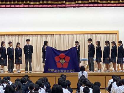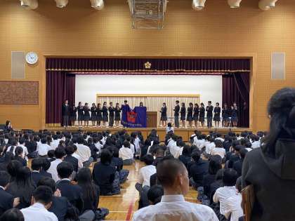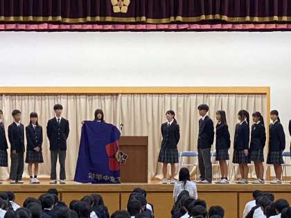 生徒会旗の引き継ぎでは、第18期生徒会から第19期生徒会へ、生徒会旗が手渡されました。