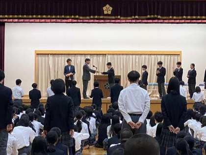 全員がしっかりした態度で式に臨むことができました。先輩たちが築いた伝統を引き継ぎ、みんなの力で、新たな下京中学校の歴史をつくっていきましょう。