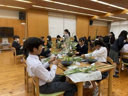 これらを「自由花(じゆうか)」というスタイルで活けました。自由花とは、約束事を持たず、あらゆる住空間やシチュエーションを演出し、楽しむいけばなのスタイルです。