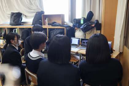 1月21日(火)、海外の生徒との交流学習を行いました。東南アジアの学校の子どもたちとオンラインでつながり、交流します。これまで、自分のテーマに従ってアンケート調査を行い、その内容をレポートできるよう準備してきました。英語で「話す」「聞く」力を試す絶好の機会に、ドキドキわくわくした表情の生徒たちです。