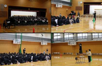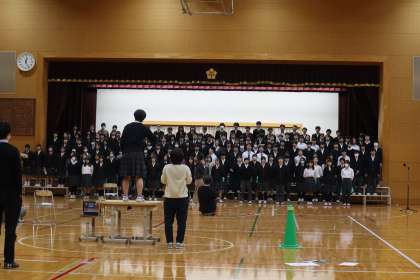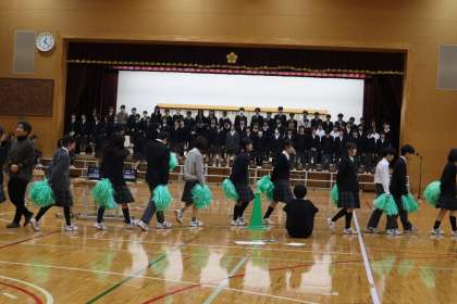 各学年、3年生を送る会に向けて、取り組みを進めています。3月5日(水)、体育館での学年練習がありました。