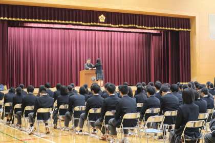 3月12日(水)、3年生の卒業式練習の様子です。呼名練習や式の作法を真剣に取り組み、卒業式本番に向けて準備を進めています。生徒たちの真摯な姿勢と協力のもと、練習は順調に進みました。
