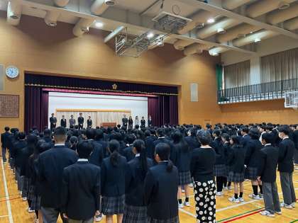 下京中学校から今年度、12名の教職員が離任されます。本日、10名の離退任される教職員に参列いただき、離任式を行いました。卒業生・保護者の方々も多く訪れ、心温まる式となりました。