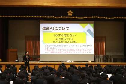 最後に、「GIGA開き」を行いました。学びの重要なツールであるGIGA端末利用のルール等について、「まことしやかに書かれている情報を鵜呑み(うのみ)にしない」「個人情報を書き込まない」等、具体例をあげて学習しました。