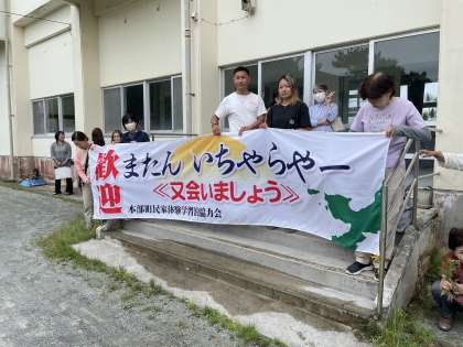 退村式を終え、別れを惜しみながら「もとぶ元気村」に出発しました。