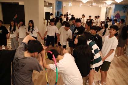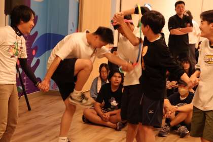 続いてフラフープリレーです。クラスで一つの輪をつくり、一体感を強めました。