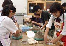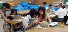 1組の美術の学習で、陶器のランプシェードを作っています。前回は、陶芸の先生にも来ていただいて、成形をしました。今日は、光を出すための穴を開けました。形も、穴の開け方も、それぞれ工夫して制作しています。