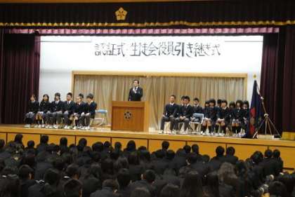 いよいよ新しい生徒会が、スタートしました。これまで築き上げた伝統を、さらに発展させて、『下京中』の新しいページを彩ってほしいと思います。