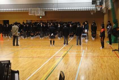 全校で、犠牲となられた多くの皆様に、哀悼の意を表すために、大震災が起きた午後2時46分から1分間、黙とうし、犠牲者のめい福を祈りました。(3年生は、午後から下校のため、終学活で行いました。)