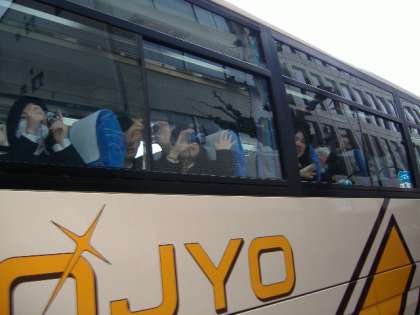 午前9時,3年生を乗せたバスが伊丹空港に向けて出発しました。