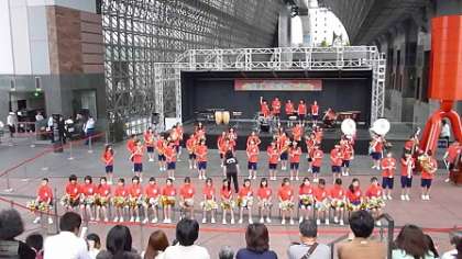 写真は、はつらつとした演奏やダンスを披露した駅ビルコンサートでの、本校・吹奏楽部の様子です。