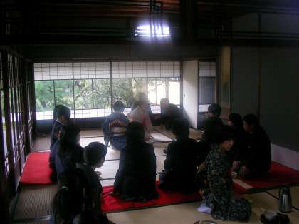きれいなお庭を眺めながら,小学生(植柳小・崇仁小・六条院小の6年生)と