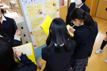 「○○と私たちの暮らし」をテーマに、グループ活動を中心に取り組んできた1年生の『探究』活動。「○○」には、それぞれのグループのテーマが入ります。