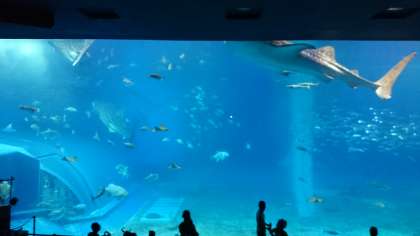 大きな水槽で泳ぐジンベイザメを眺め,旅を満喫したようです。