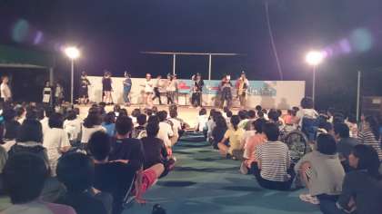 写真は,昨晩のレクリェーションと,伊江島の美しいビーチとやガマの様子です。
