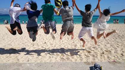 美しいビーチで波と戯れたり、ヤドカリを遊んだりと、京都では味わえない時間を