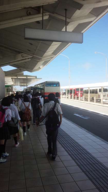 3年生修学旅行一行は、国際通りでのグループ別研修を終え、那覇空港に到着しました。