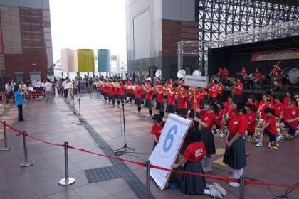 迫力いっぱいの演奏と元気いっぱいの笑顔で、会場をわかしてくれました。初めてのマーチングということで、厳しい練習となったこの1カ月、必死で取り組んでいました。