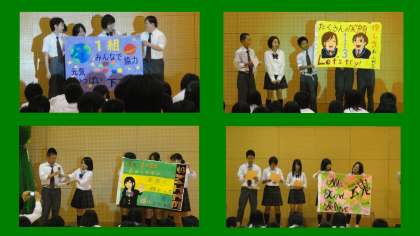 生徒会のスローガンが発表され、各学級の目標発表を交えながら議案審議が進められました。