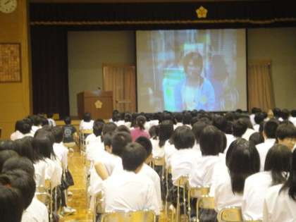 会場の体育館には、来年チャレンジ体験を行う1年生も出席しました。