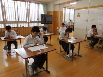 初日の今日は、自主学習「学充」の後、3教科のテストが行われました。