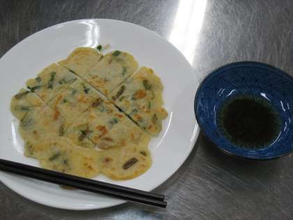 みんなが楽しみにしていた、調理実習で『チジミ』を焼きました。