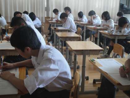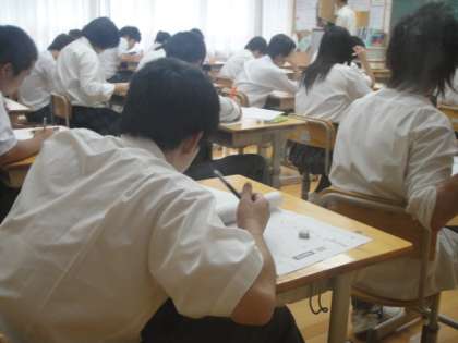 体育系の部活動は、夏休みで引退し、休み中取り組んできた学習の成果を確認しています。今日は、国語・社会・数学の3教科実施です。明日は、午後から理科・英語の2教科実施です。