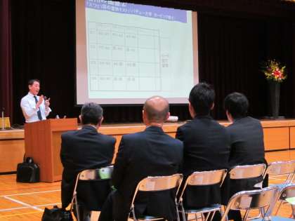 また、文部科学省より田村視学官にも来校していただき、講演をしていただきました。講演の中には、子どもたちの本気を引き出すためには、教師の本気が必要不可欠であるというお言葉もありました。本校の校是は、「−志きらめく−夢本氣でつかむ」です。下京中学校全体で、今後も何事にも本気で取り組む姿勢を保ち続け、また新たな一歩を踏み出していきたいと考えています。