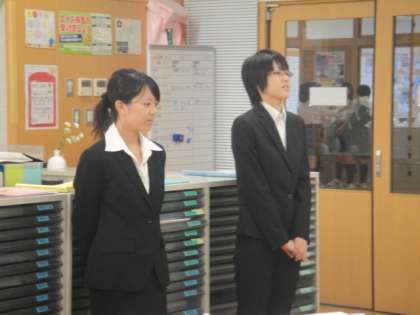 8日(木)から大谷大学の学生2人が、授業の補助をしたり課外活動や行事などいろいろな活動の実務経験を行う、学校インターンシップの体験に来校しました。