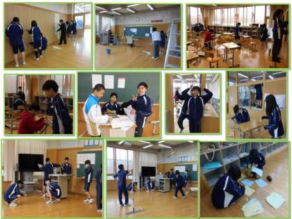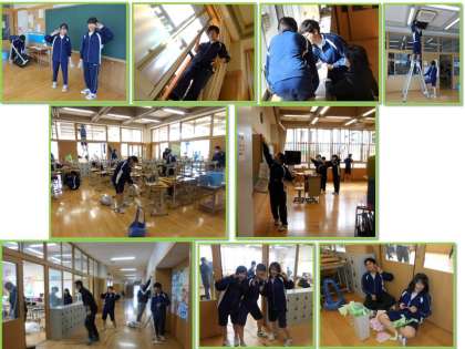 下の写真は、本日登校した3年生徒が環境整備をしているところです。1年間お世話になった教室等を心を込めてきれいにしました。