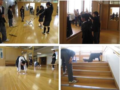 下京中学校では、今年度より、毎日、終学活前に全校で清掃活動に取り組みます。活動初日の本日、教室やフロアの掃き掃除や雑巾がけを行いました。BGMも流しながら、みんなで楽しく掃除をすることができました。