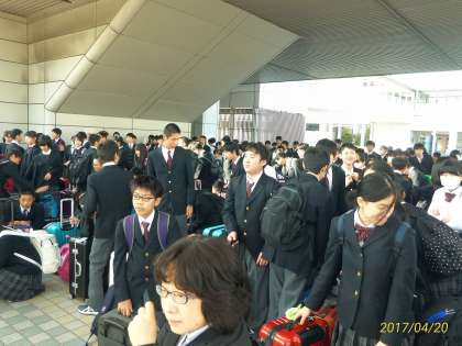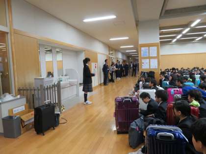 3年生は,沖縄方面の修学旅行,学校を出発し,大阪空港に到着しています。近畿地方は好天に恵まれていますが,沖縄方面は,天気予報では雨が少し心配です。稔り多い充実した楽しい旅行になりますように。