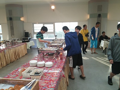 修学旅行二日目の朝です。ホテルの朝食はバイキングです。