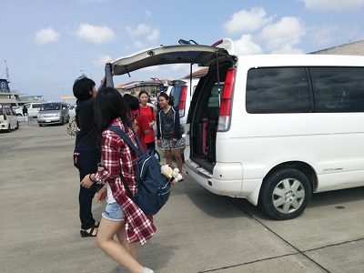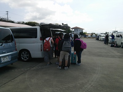 伊江島で入村式を終え,お世話になる民家に向けて出発です。