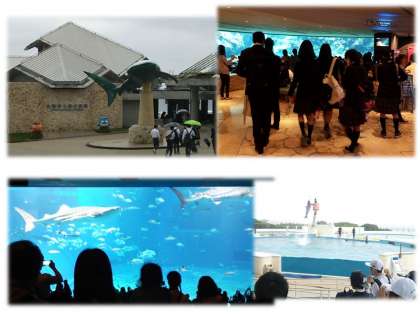 3年生の修学旅行一行は、現在、美ら海水族館の見学を楽しんでいるようです。巨大水槽のジンベイザメに感動したり,雨にぬれながらイルカショーに夢中になっている生徒もいるようです。