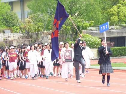 4月29日に第59回京都市春季総合開会式が西京極総合公園にて開催されました。下京中学校選手団も一人一人が大きな掛け声でリズムをとり堂々と行進しました。選手宣誓では,バレーボール競技代表の男女の選手が,スポーツができることに対する感謝と喜びを中学生らしくしっかりと伝えてくれていました。全市84校の各選手にこの思いが伝わったことでしょう。